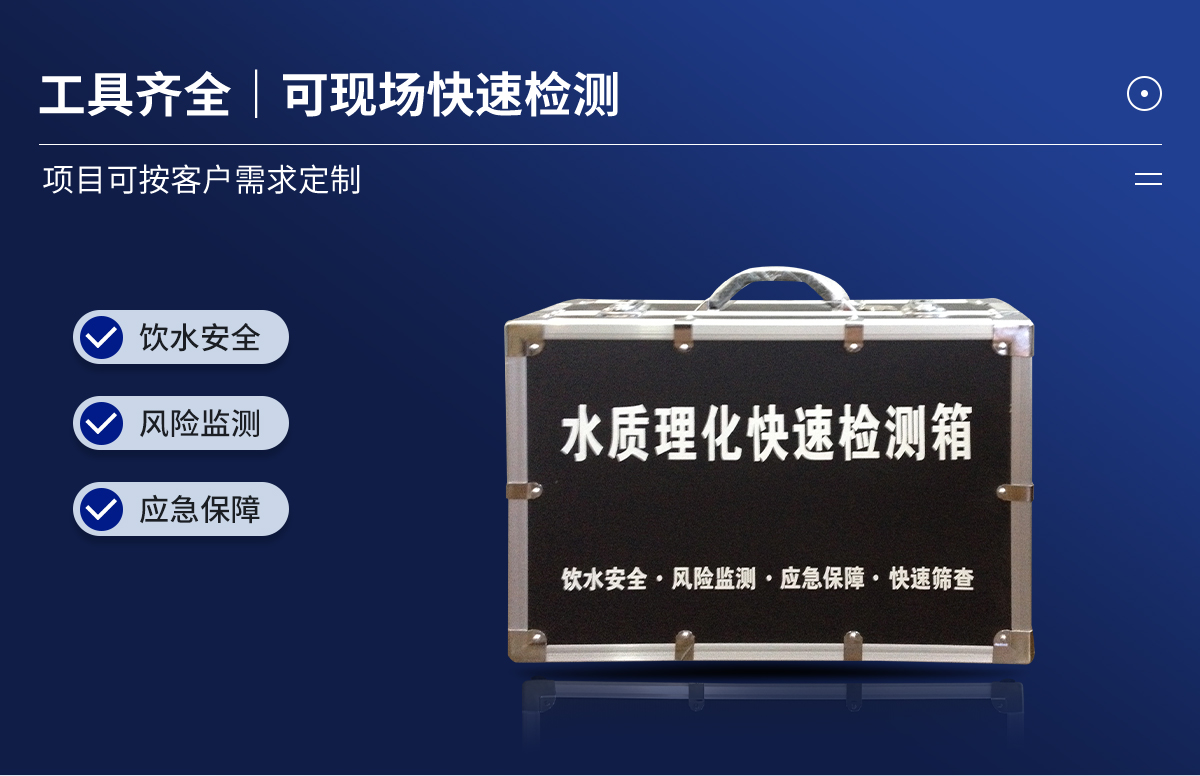 產(chǎn)品描述:檢測箱預(yù)裝輔助設(shè)備:0.1~1.0mL可調(diào)式移液器1把,移液頭50支,計算器1個,多功能剪刀1把,試管架1個,30ml采樣器1個,30ml采樣罐10個,樣品杯70個,一次性滴管30支,鑷子2把,量尺1把,小刀1把,PH試紙1包,封口膜1袋,記號筆2支。說明:預(yù)裝輔助設(shè)備為打包產(chǎn)品,不拆購,其他項目可增減。產(chǎn)品編號品名規(guī)格單位數(shù)量S101水質(zhì)理化檢測ABS鋁合【詳情】